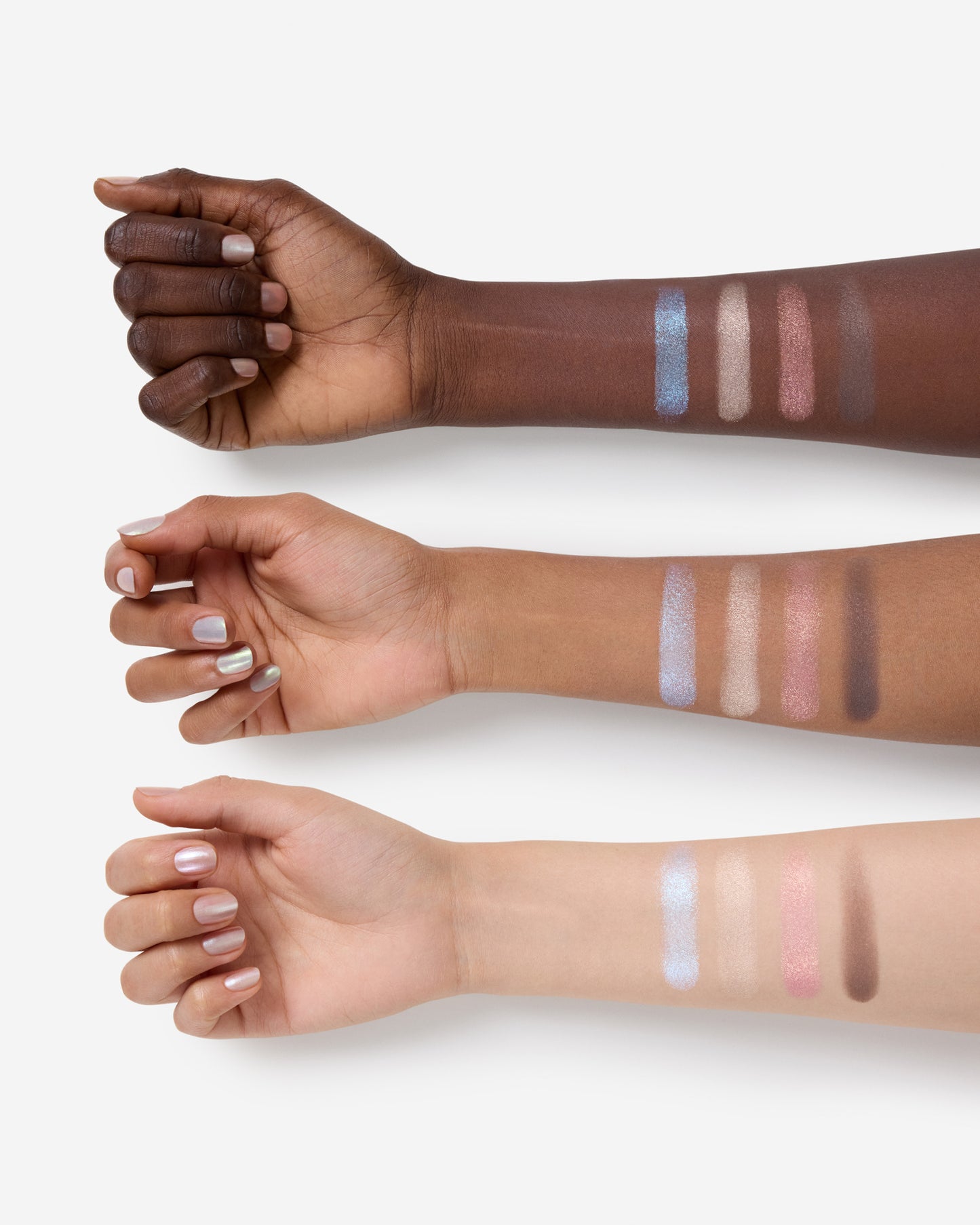 A palette for those who prefer to coast the cosmos on a wave of pearlescent champagnes and cool pinks, crystallized shimmering blues, and deep galactic browns that transform the everyday into your own fantasy RPG