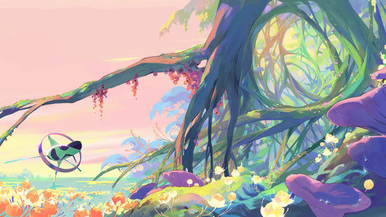 A solitary nomad with a curious disposition, Bow travels in her spaceship Ring Light, following the Glow to restore color to the universe. Though her past is blurry, visions of vibrant worlds have always guided her—messages calling her to her true self. With her gentle, empathetic symbiant Spark by her side, Bow discovers the secrets of the beauty universe and unlocks long-repressed, god-like traits within herself.