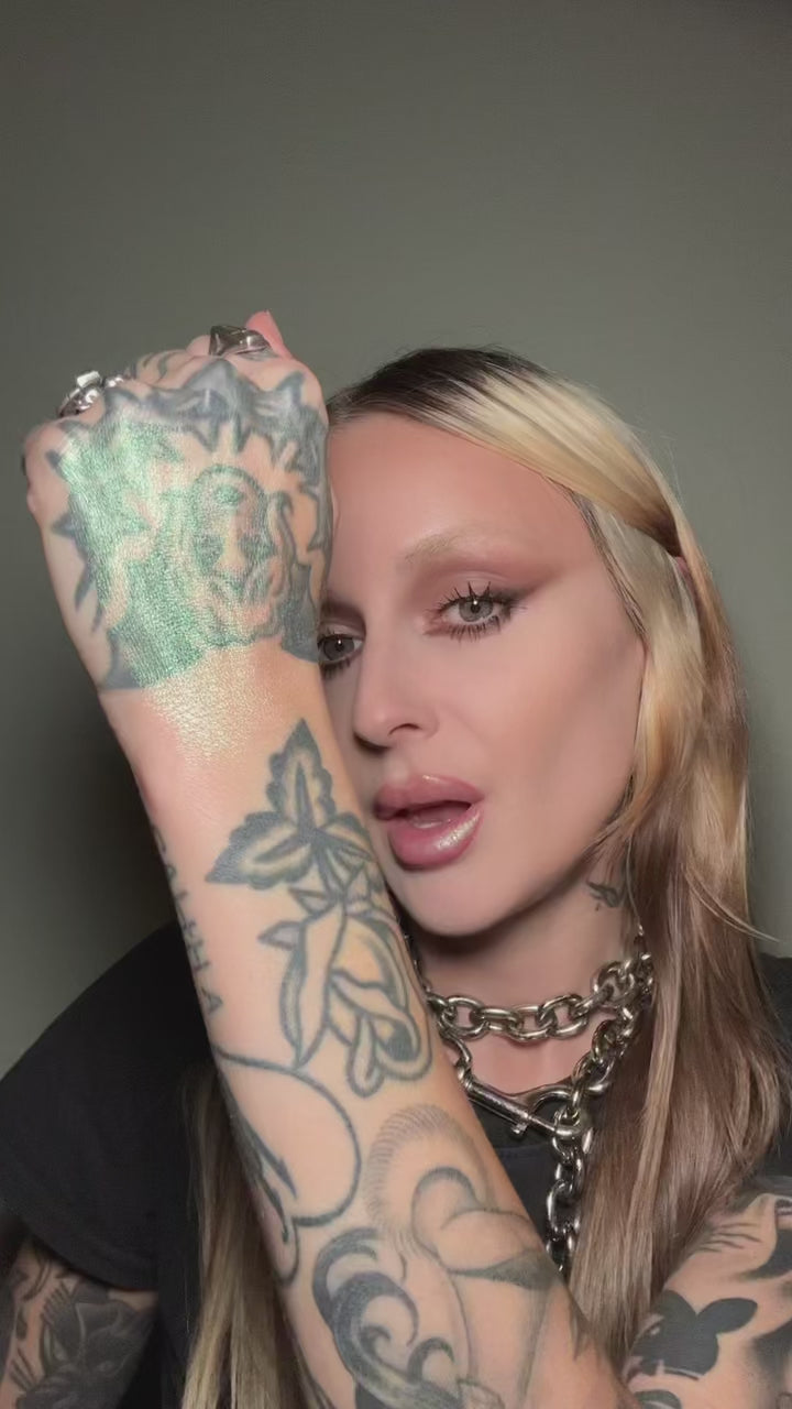 Discover our otherworldly Genesis Glow All Over Highlighter Egg: designed to imitate the ethereal digital glow of a screen, this product has been crafted to allow the user to create a newfangled skin IRL. Experience a cyber sheen that can be worn across the face, ears, nose and chest. Genderless, intuitive and otherworldly, apply as you wish.